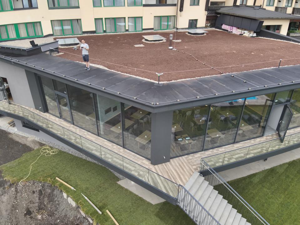 Flachdachabdichtungen mit Villas Dachbahnen Villatop Duo in anthrazit